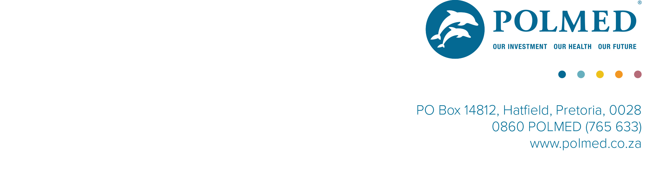 Should you require assistance or have any questions after registration onto the programme, you may contact us on 0860 765 633 (follow the voice prompts to the Disease Risk Management programme) between 08:30 and 17:00, Monday to Friday or send an email to: polmeddiseaseman@medscheme.co.za. Kind regards, POLMED Disease Risk Management Programme |